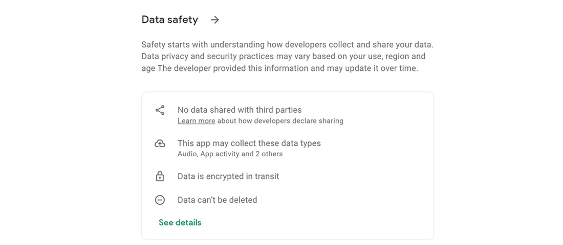 بخش محافظت از دادهها «Data Safety» که در اواخر ماه آوریل توسط شرکت گوگل معرفی شد، قابلیتی است که به کاربران اجازه میدهد دورنمایی یکپارچه از مجوزهای مورد نیاز یک برنامه و شیوههای جمعآوری اطلاعات را با جزئیاتی بیشتر در اختیار داشته باشند.